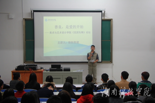 本网讯(通讯员 唐忠林)11月10日,美术与艺术设计学院在美术楼北楼举办以 “善良,是爱的开始”为主题的“党团先锋”论坛第一讲。
