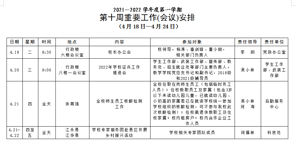 [党政办]第十周重要工作(会议)安排(4月18—4月24日)